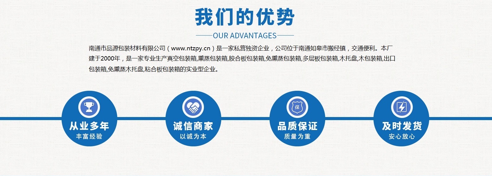 南通市品源包裝材料有限公司(www.cnshengxian.com)是一家私營(yíng)獨(dú)資企業(yè),公司位于南通如皋市搬經(jīng)鎮(zhèn),交通便利。本廠(chǎng)建于2000年,是一家專(zhuān)業(yè)生產(chǎn)真空包裝箱,熏蒸包裝箱,膠合板包裝箱,免熏蒸包裝箱,多層板包裝箱,木托盤(pán),木包裝箱,出口包裝箱,免熏蒸木托盤(pán),粘合板包裝箱的實(shí)業(yè)型企業(yè)。